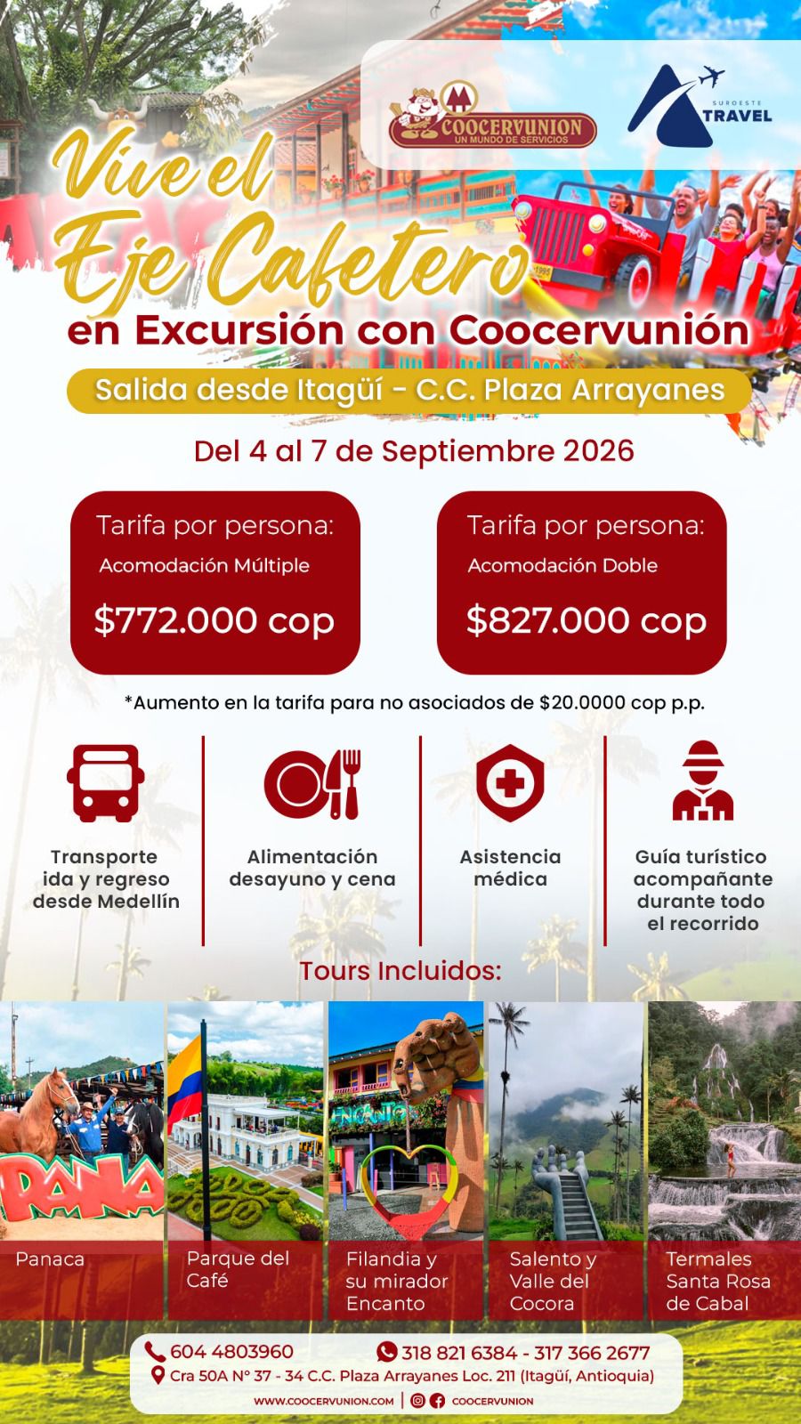 Con el propósito de seguir generando experiencias de bienestar y recreación para nuestros asociados y sus familias, Coocervunión presenta una nueva salida turística al corazón de Colombia: el Eje Cafetero, uno de los destinos más emblemáticos del país por su cultura, paisajes y tradición cafetera.